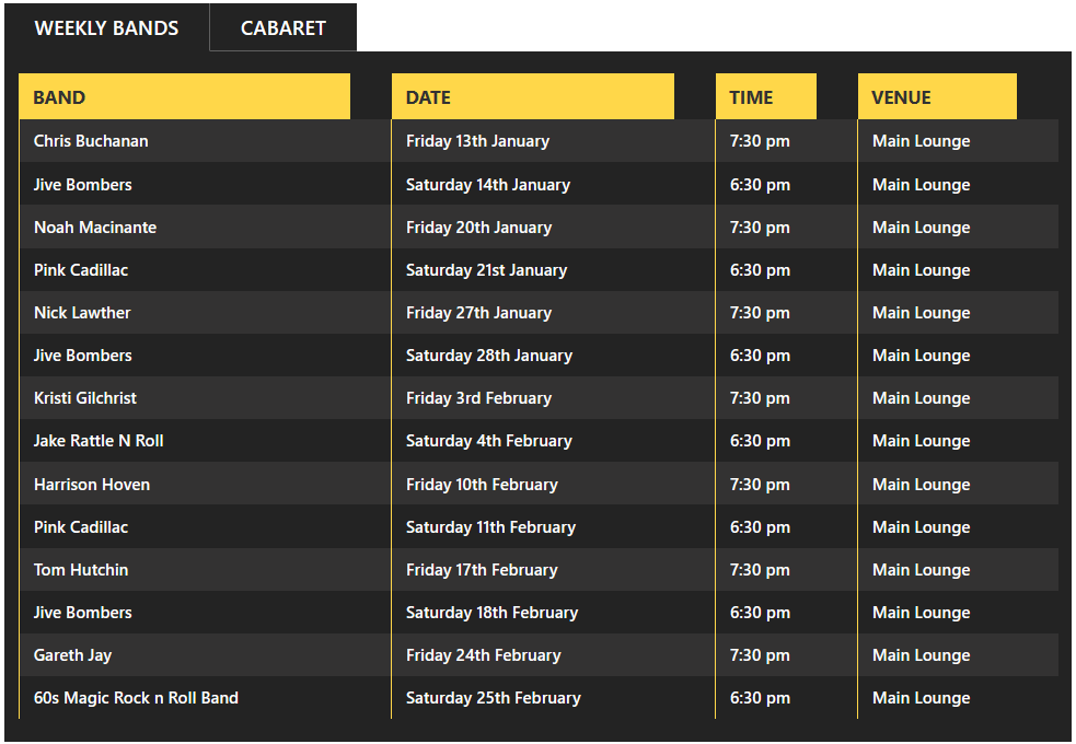 Home | About Us | Gig Guides | Your Event | Give Me5 0| Band Profiles | Where to Learn | Shoe's and Stuff | Special Events page 1 | Special events page 2 | Special events | CCrocknroll Walkers | Photo Gallery page 1 | Photo Gallery Page 2 | Photo Gallery page 3 | Free Stuff | Fun Links |